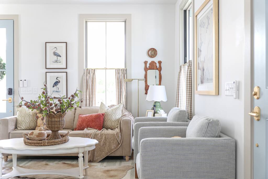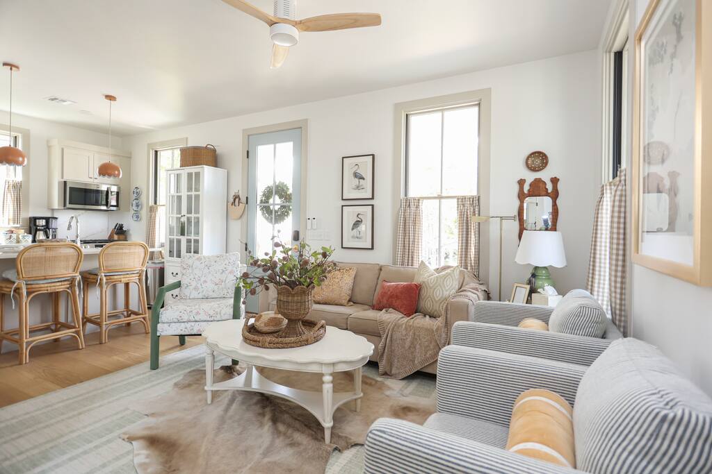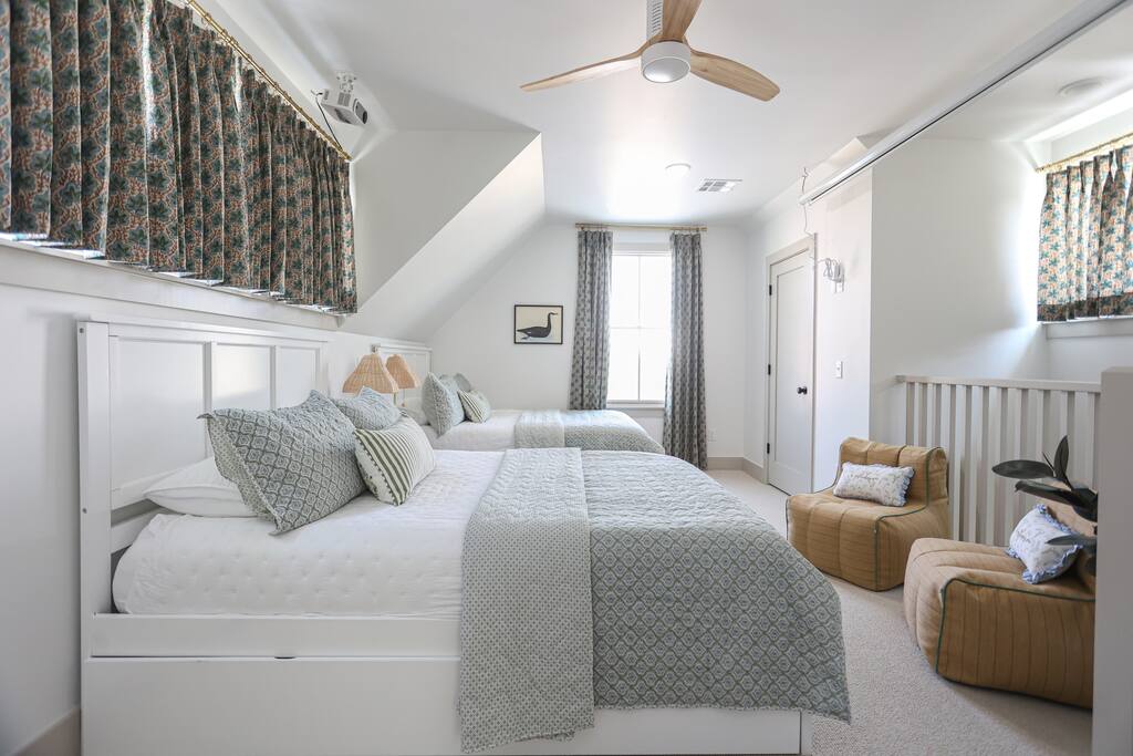 Event Planning/Design: Celebrating something special? Ask us about our event planning & design services to make your stay unforgettable! Golf Cart Use: Golf cart use is complimentary for registered guests 21+ with a signed waiver. In the event of maintenance needs, availability is not guaranteed and refunds will not be issued. Community Amenities: Pools, parks, pop-up shops, restaurants, and lake access are all shared spaces within the community. Hours and availability may vary seasonally. We recommend viewing the Carlton Landing website prior to your stay for up-to-date information. Wi-Fi: Carlton Landing is a remote lakeside town—Wi-Fi is reliable most of the time, but occasional outages may occur. Events: The home is best suited for families and small groups—parties or large gatherings are not permitted. Stairs: The upstairs bedroom requires using stairs, which may not be suitable for all guests.